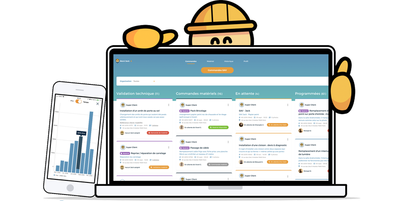 L’entreprise propose une solution centralisée et complète pour les professionnels via son application web et aussi mobile disponible sur l’Apple Store et le Play Store. Bien plus qu’une simple plateforme de mise-en-relation, Merci Jack gère toute la chaîne de maintenance curative, préventive, réglementaire et obligatoire de ses clients, que ce soit côté matériel, équipement et artisans avec une équipe technique qui s’occupe de tout le support de A à Z et un réseau d’artisans professionnels appelés « les Jack ».